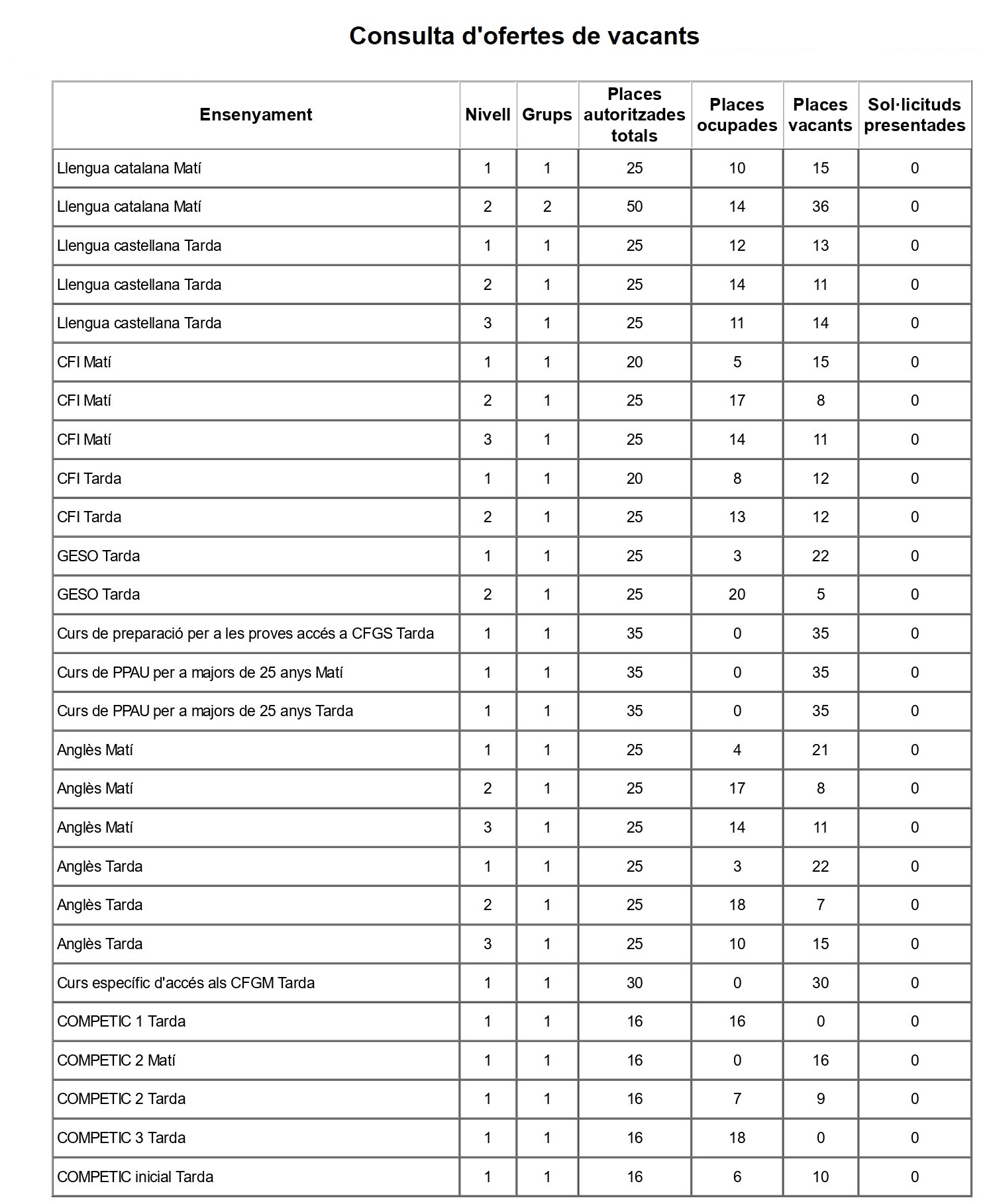 El dia 15 de juliol a la tarda es faran públiques la llista de persones admeses amb plaça i la llista d'espera.