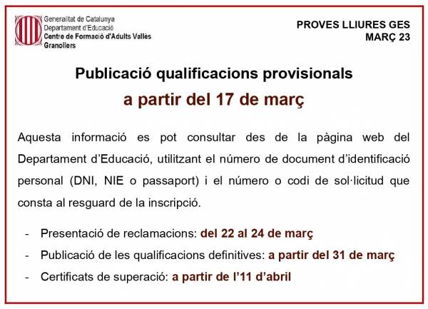 Per consultar les qualificacions provisionals, cliqueu AQUÍ.