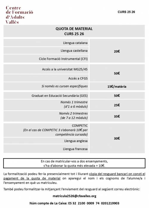 PROCÉS DE PREINSCRIPCIÓ I MATRÍCULA 2025-2026
