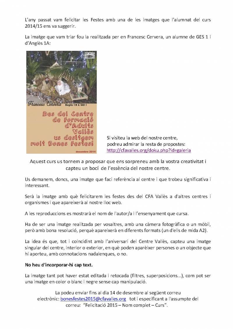 Especifiqueu a l’assumpte del correu: Postal 2016 – Nom complet – Curs.