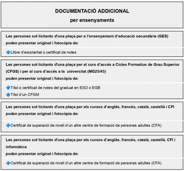 Consulteu la documentació específica necessària per a cada ensenyament, per acreditar criteris de prioritat i per a sol·licitants menors d'edat.