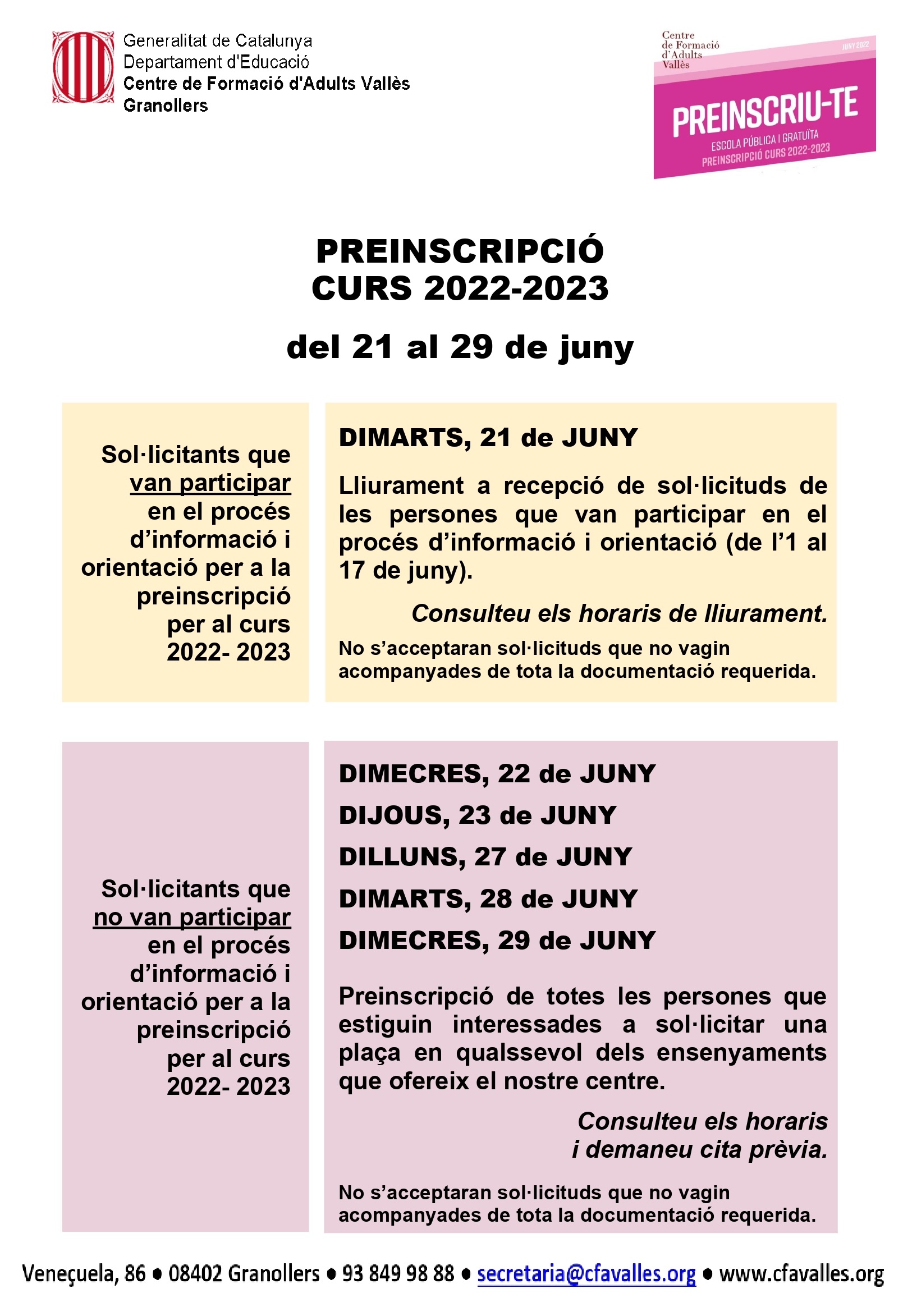 FASE 2: PREINSCRIPCIÓ CURS 22 23