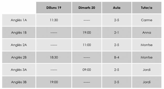 INICI DE CURS 22 23: DATA, HORARI, AULA I TUTOR/A