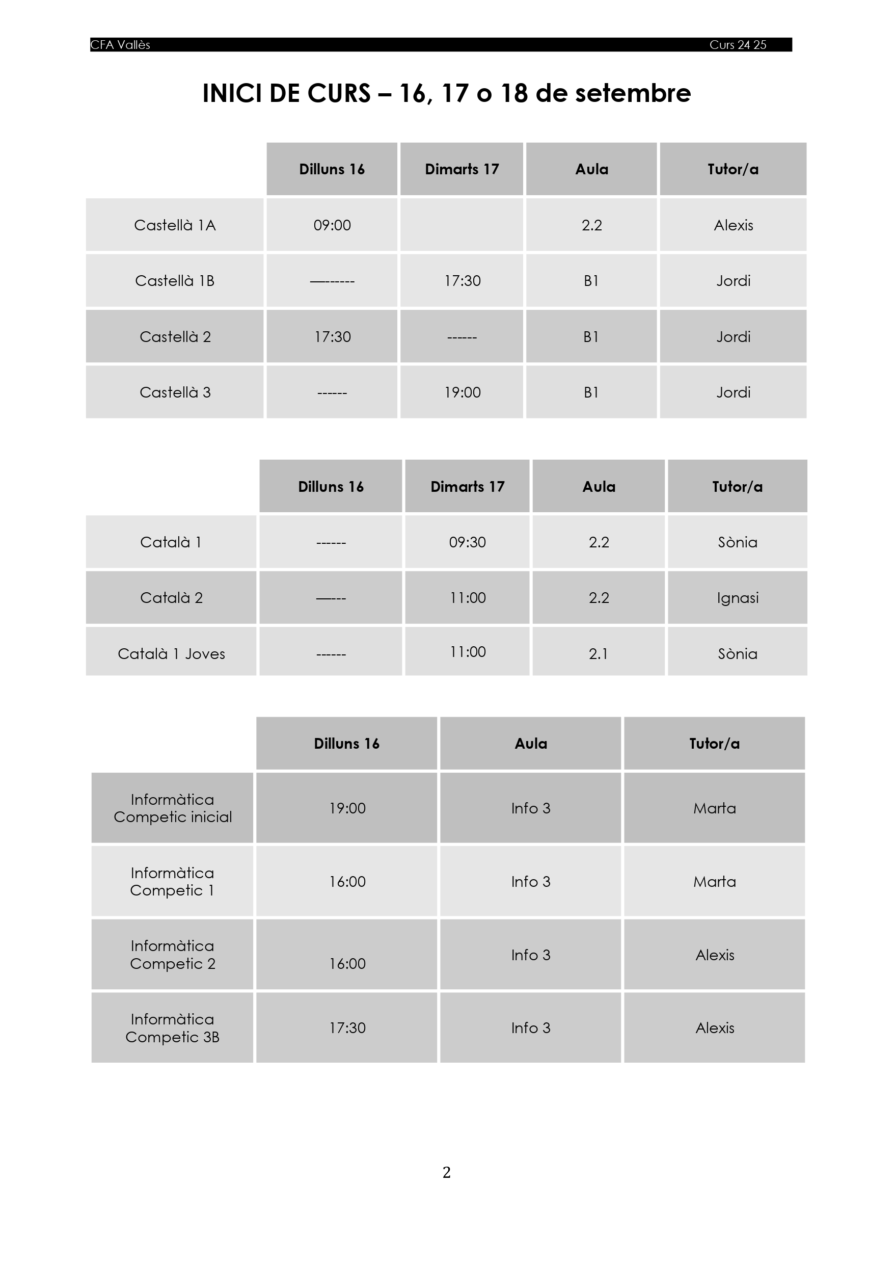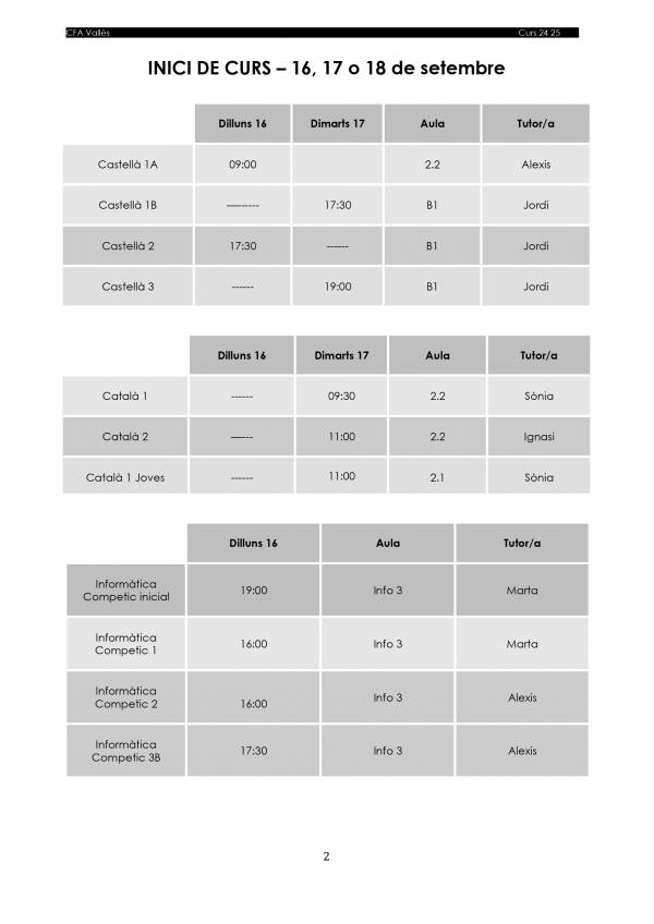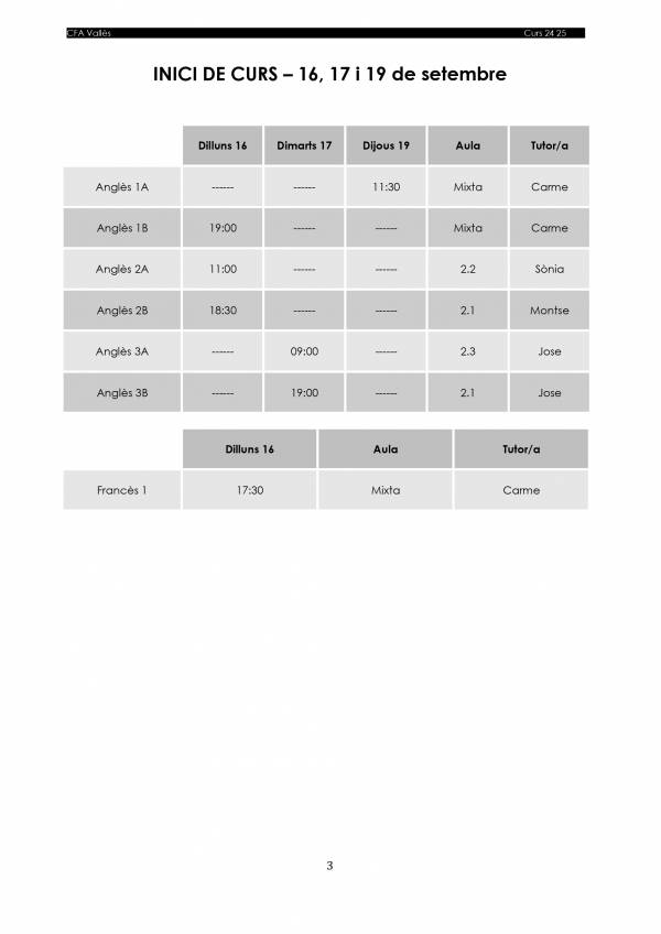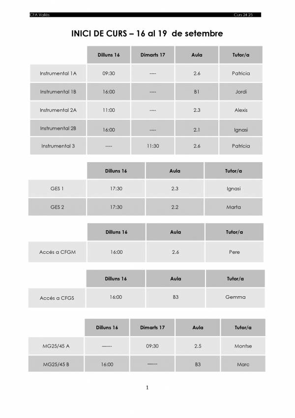 INICI DE LES CLASSES - SETEMBRE 24