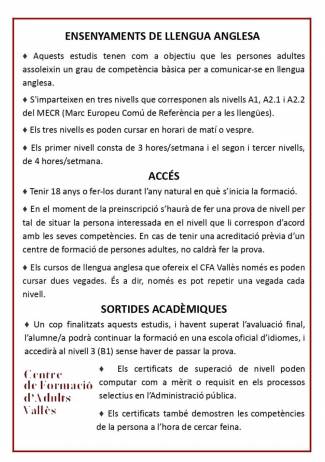 ♦ La finalitat d'aquest ensenyament és iniciar-se en l'aprenentatge de la llengua anglesa.