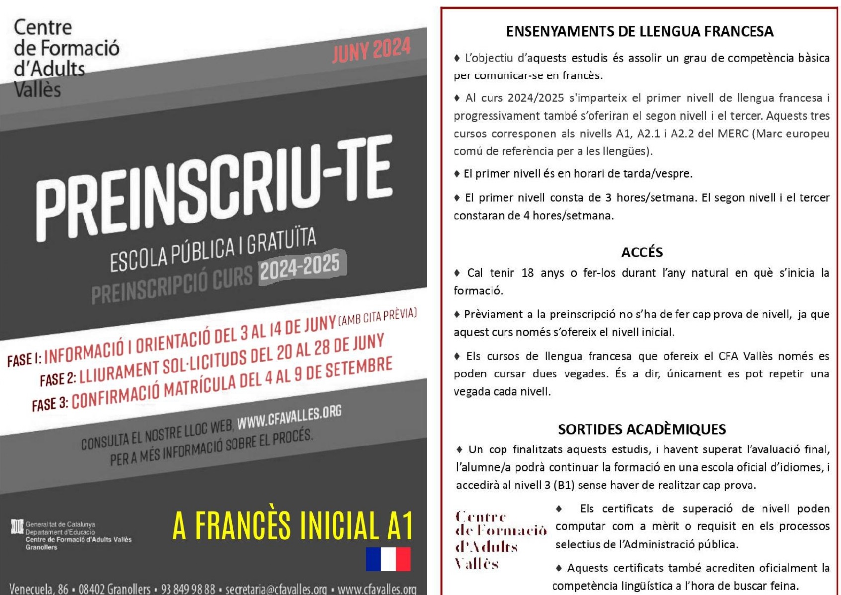 El CFA Vallès ofereix un curs de nivell 1: un a la franja del vespre.