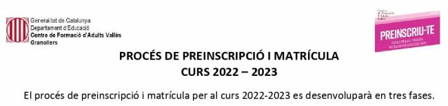 PROCÉS DE PREINSCRIPCIÓ I MATRÍCULA 2022-2023