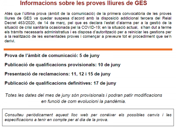 Informació sobre les proves lliures del Departament d'Educació, cliqueu AQUÍ.