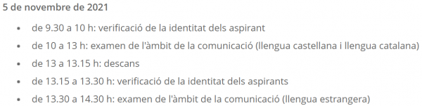 | Horari presentació de sol·licituds de convalidació d'àmbits |