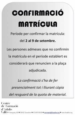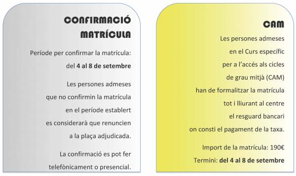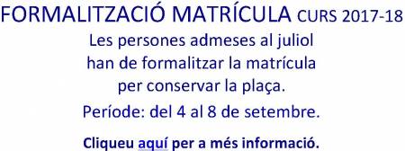 Cliqueu AQUÍ per consultar les actuacions a fer per efectiva la matrícula.