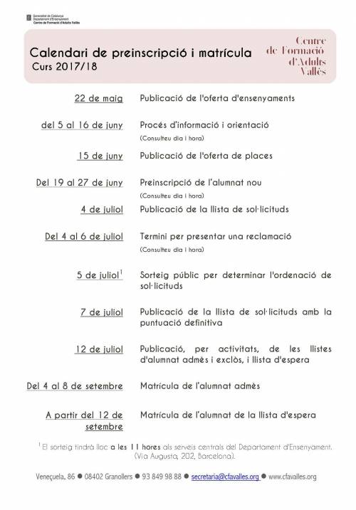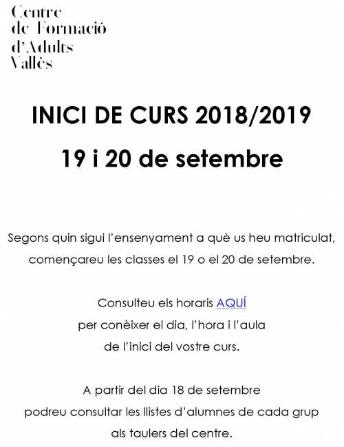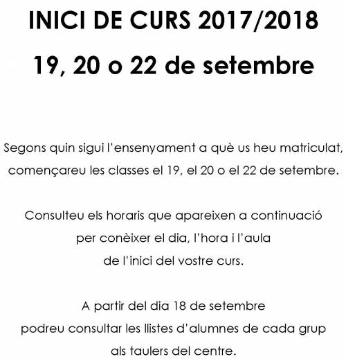 Consulteu AQUÍ els horaris per a la preinscripció.