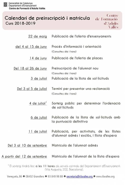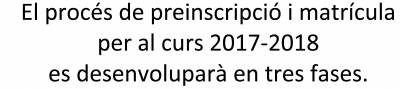 Per a més informació sobre el procés de preinscripció per al curs 2018.2019, cliqueu AQUÍ.