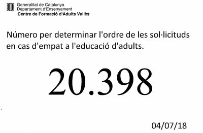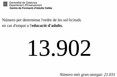 Les llistes amb les persones sol·licitabts que tenen plaça assignada al nostre centre i amb les que passen a la llista d'espera s'han de consultar al centre.