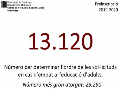 Per a més informació sobre el procés de preinscripció per al curs 2019-2020, cliqueu AQUÍ.