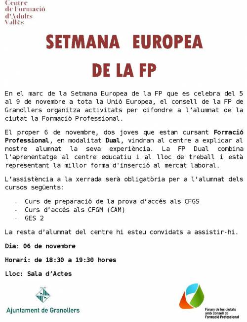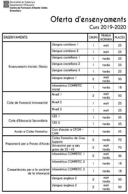 Per a més informació sobre l'oferta formativa del nostre centre, cliqueu AQUÍ.