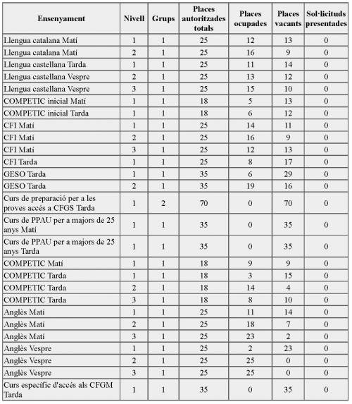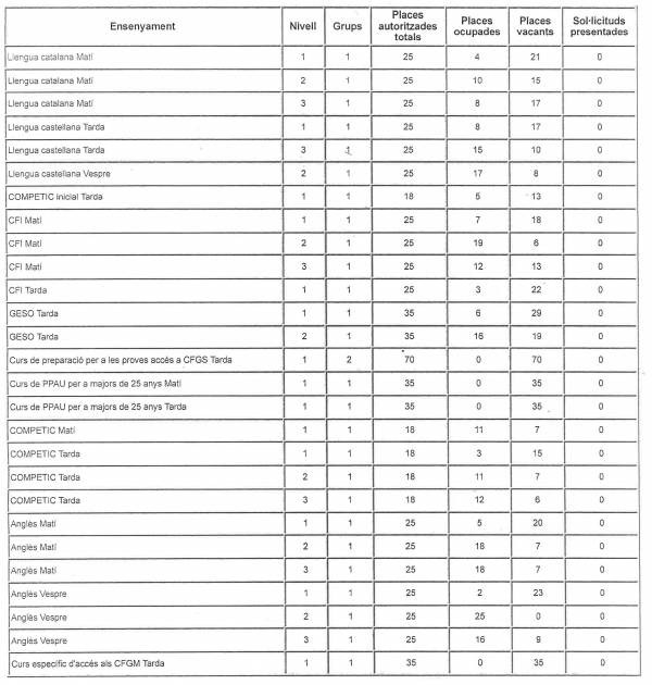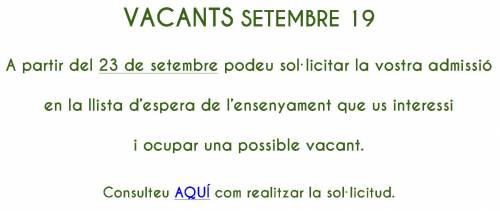 Si us interessa ocupar una vacant en un ensenyament del nostre centre, cliqueu AQUÍ.