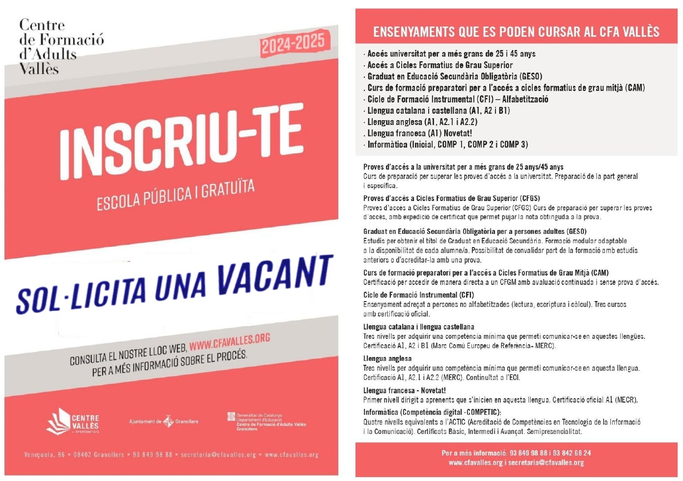 Per a informació sobre els ensenyaments que es cursen al nostre centre i els horaris dels cursos, cliqueu AQUÍ.