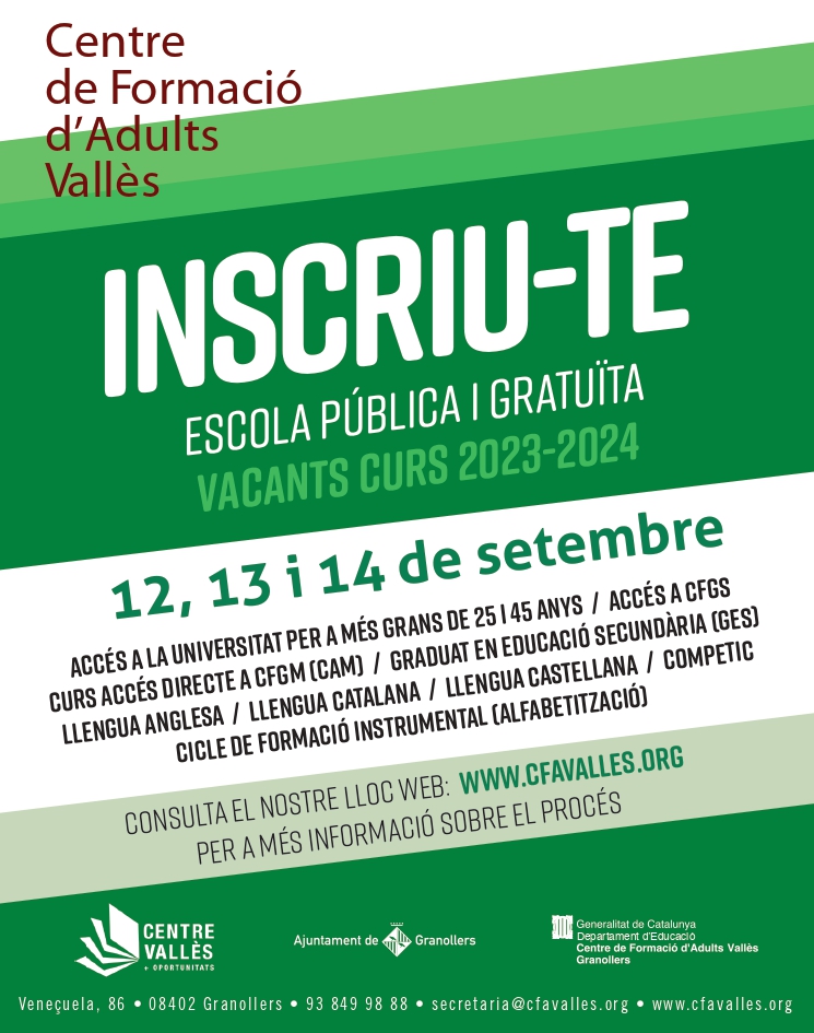 | Secretaria CFA Vallès - 93 842 68 24 |