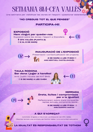 Cliqueu AQUÍ per conèixer més detalls sobre les activitats programades per a celebrar el Dia Internacional de la Dona.