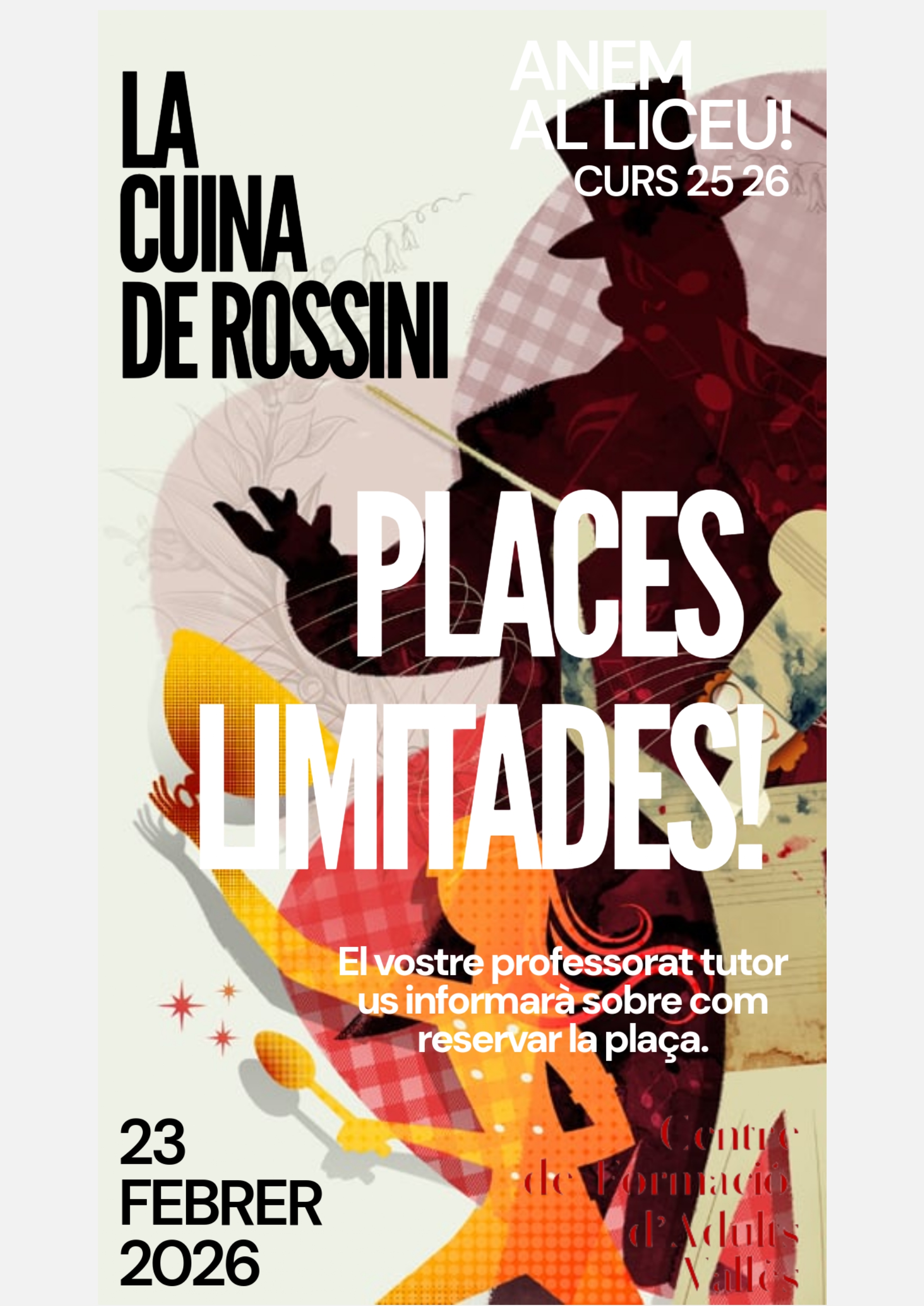 Tingueu en compte que les places són limitades i s’atorgaran tot i respectant l’ordre de reserva!