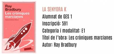 Enguany, l'alumnat de GES 1 i CAM ha llegit l'obra Cròniques marcianes de Ray Bradbury i després d'analitzar-la i discutir el seu argument, els personatges i els missatges implícits ha elaborat, en grup, diferents produccions audiovisuals amb què s'ha convertit en crític literari i on comparteix les seves apreciacions i recomanacions sobre l'obra.