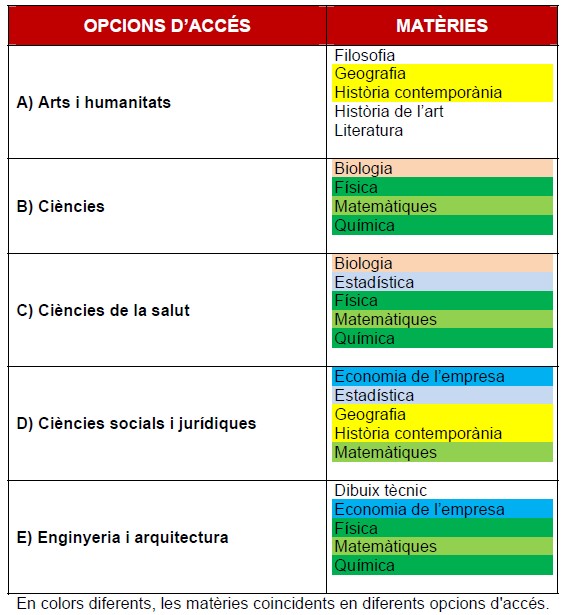 En funció de l'opció triada, el candidat tindrà preferència per accedir als estudis universitaris vinculats a aquella opció. L'adscripció dels títols universitaris oficials de grau a les branques de coneixement es pot consultar al web: http://universitats.gencat.cat/ca/cercador/.