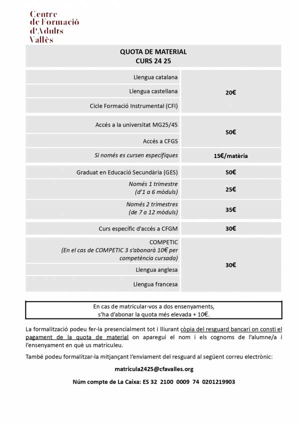 PROCÉS DE PREINSCRIPCIÓ I MATRÍCULA 2024-2025