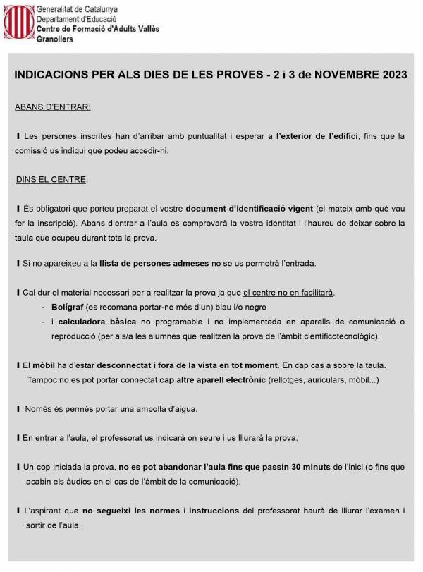 Descarregueu-vos el formulari, empleneu-lo i lliureu-lo presencialment al centre en el termini establert: del 20 al 22 de novembre.
