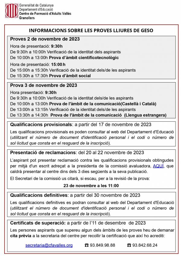 El Secretari de la comissió us citarà, si escau, per a la revisió de la prova.