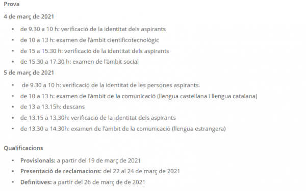 AQUÍ trobareu la informació sobre el desenvolupament de les proves dels dies 5 i 6 de novembre, els requisits a complir i el material i documents que heu de dur.