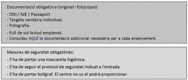 Els dies 10, 13 i 14 de setembre podreu sol·licitar una vacant per a un o dos ensenyaments en el nostre centre de manera presencial mitjançant cita prèvia tot i seguint les següents instruccions: