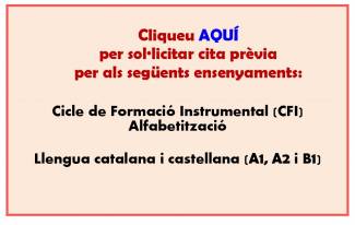 Per a orientació i vacants sobre els ensenyaments de Llengua castellana, Llengua catalana i Formació instrumental, AQUÍ.
