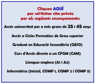 Per a orientació i vacants sobre els ensenyaments de GES (Graduat en Educació Secundària) i CAM (Curs d'Accés directe a CFGM) cliqueu AQUÍ.