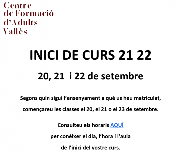 Cliqueu AQUÍ per a consultar els horaris dels ensenyaments.
