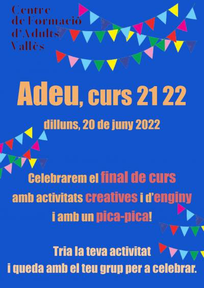 Cliqueu AQUÍ per conèixer amb quines activitats celebrarem el final del curs 21 22 i com us hi podeu apuntar.