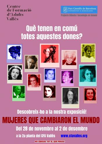Exposició MUJERES QUE CAMBIARON EL MUNDO del 28 de novembre fins al 2 de desembre a la 2a planta del CFA Vallès, més informació AQUÍ.