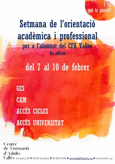 Cliqueu AQUÍ per a més informació sobre la fase 1 d'orientació i per sol·licitar cita prèvia.