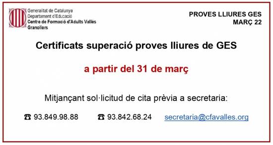 3) Presenteu-vos al CFA Vallès el dia i hora indicada amb la sol·licitud i la documentació acreditativa (original i fotocòpia).