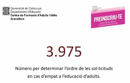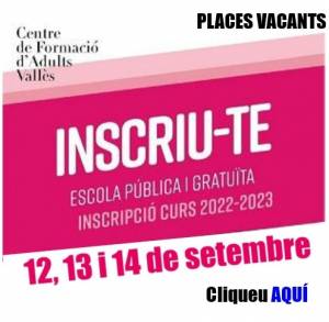 Recordeu que en cas que no es confirmi la matrícula en el període del 2 al 9 de setembre, la plaça quedarà vacant i serà assignada a les persones en llista d'espera.