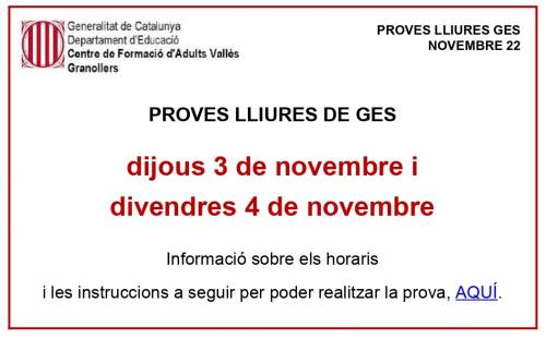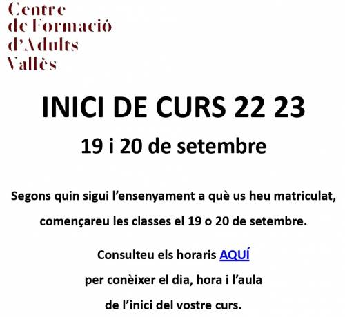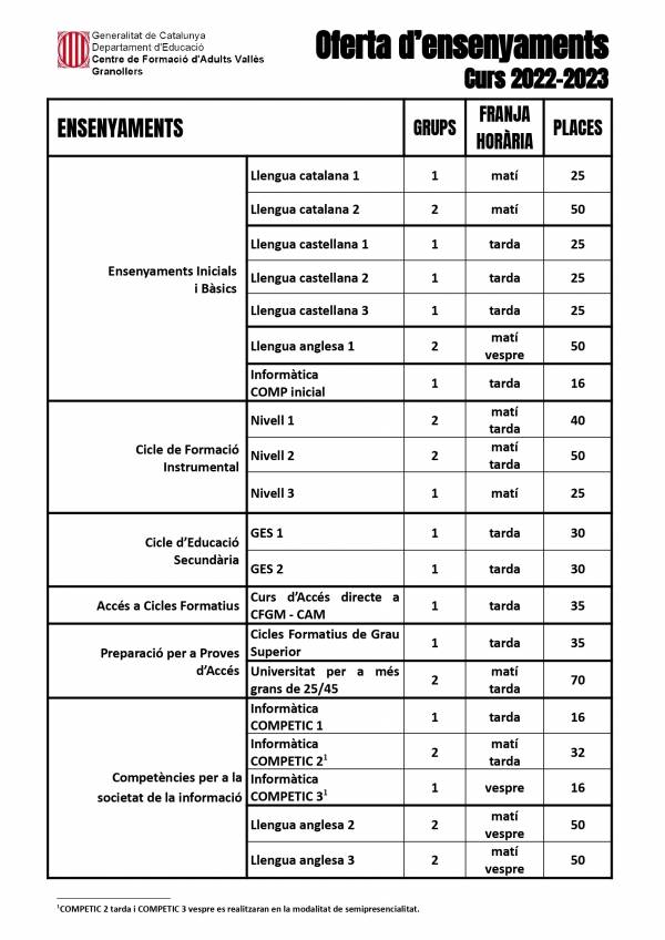Cliqueu AQUÍ per a consultar els horaris de cada grup.