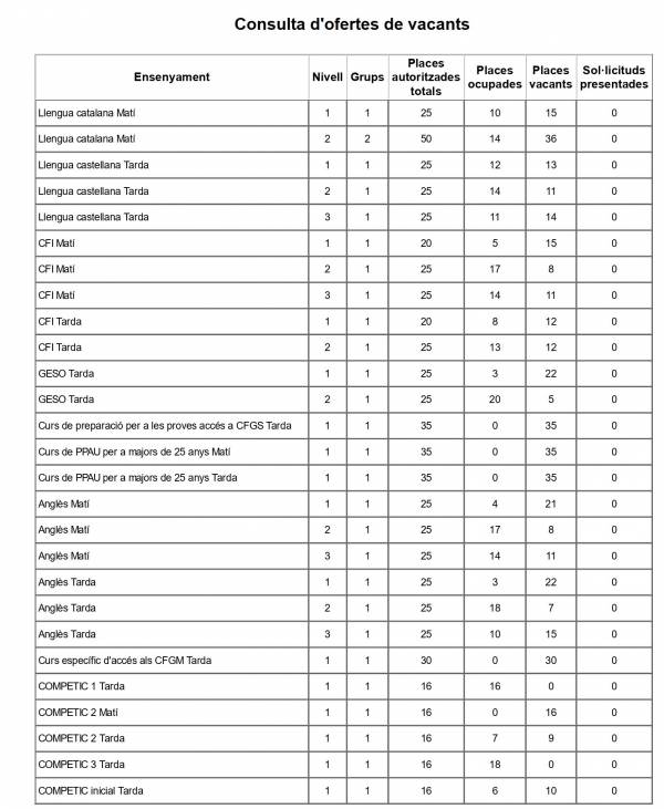 Recordeu que es tracta d’una llista provisional que certifica que heu sol·licitat una vacant en el nostre centre; la llista d’admesos/es i exclosos/es definitiva i la llista d’espera es faran públiques el 15 de juliol a la tarda.