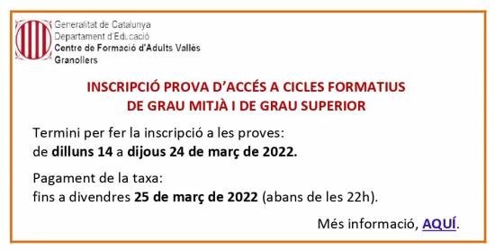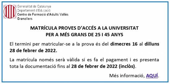 Cliqueu AQUÍ per a més informació sobre el procés.