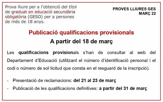 Per consultar les qualificacions provisionals, cliqueu AQUÍ.