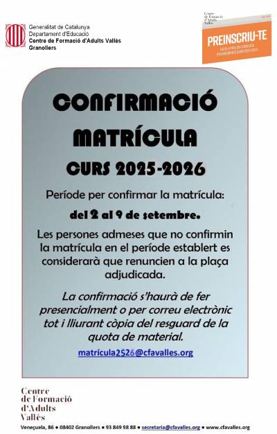 PROCÉS DE PREINSCRIPCIÓ I MATRÍCULA 2025-2026