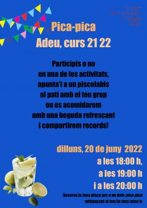 ♦ 17:00h → Els grups de CFI 1B, Català 1B i Castellà 2B a la sala d'estudis.