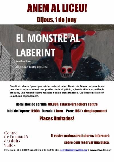 Si voleu participar en aquesta activitat, cal que ho comuniqueu al vostre professorat tutor i feu el pagament de l’entrada durant el període de l’11 al 15 de desembre. del 8 al 15 de gener.