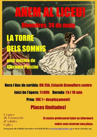 Proposem al nostre alumnat assistir a un espectacle musical que combina l’òpera amb l’art del circ i la poesia i que ens permetrà descobrir Puccini i les seves òperes en un entorn fascinant i únic, el Gran teatre del Liceu.