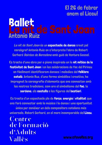 Si voleu assistir-hi, cal que feu la reserva a partir de dilluns 12 de gener tot i abonant el preu de l'entrada a secretaria o al vostre professorat tutor.