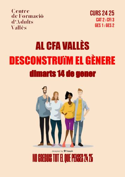 Aquest gener, els grups de CFI 3, CAT 2, GES 1 i GES 2 participaran en un taller sobre els rols i estereotips de gènere i les dinàmiques relacionals entre homes i dones.
