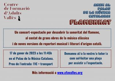 D'altra, presenciar un espectacle que ens oferirà un esplèndid contrast visual -flamenc en el Palau- i sonor -peces com La leyenda del tiempo i Entre dos aguas, amb peces clàssiques de Debussy, Casals i Falla i tradicionals catalanes: El nen de la mare i El cant dels ocells…